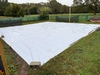 This is the pumpkin shelter I put up the weekend. It's 8 ft x 8 ft, and staked into the ground. A tarp/ PVC pipe shelter would never hold up to the storms we have had even with two layers of wind block.