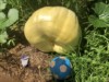 This squash weighed approximately 100 lbs and is the offspring from a cross made- 675 Maydan* x blue moon. Two of the made it to maturity. This one too on the characteristics of a very large blue moon while the other retained a dark green quash color.