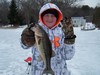 shawn and I had a great day on the ice today, he is all smiles, he won a first place in the crappie division, and pocketed a cool 420.00, he had to split it with dad, I'm not that nice! lol. this pic was of his largest bass of the day, but did not place, great 50 degree temps today, had fun.
