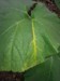 Is this from too much water? Soil temp is about 68f,, nite air temps 60f, in the box, day temps 75-85f+ Only on one leaf. I think I overdid it with the watering last years attempt, and this showed up. I am hand watering every third day 3 gallons per plant, supplemental watering on the edge of the mounds as needed. New leaves seem unaffected.