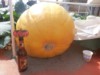 Here we practiced with the lifting ring. We lifted all with a lifting tarp this year.....but NEXT year, man....I can see it now.....blinding orange giant Orb....nervous tractor driver....people screaming...Flat Norm hollering, lol