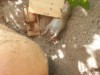 Even Flat Norm, travel size, came down to inspect the orange...prior to this photo he had his shoes and socks off to judge texture, density, and dance-ability. (Thanks Bart for the pict)