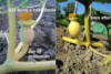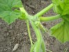 My 150 sqft plant today: The first pollination aborted, but the 2nd one (again 822 Bond x 1495 Stelts, here and now at 6 DAP) looks like it wants to grow. Apparently, thermal vine termination (repeated sunscald for the last 5 or 6 days) had accelerated cell division and cell expansion at the same time.