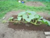 Last but not least, the 496 Geyelin. The plant seems to be sterile, at least as far as the first signs tell me (extremely strong plant, the 2nd best grower out of 6 plants, thickest main vine I�ve ever seen with my plants, absolutely no males had developed until end of june, thereafter some males finally made it into some flowers but without pollen and without stamen). Currently it looks like this pumpkin (496 x 1495) wants to grow, let�s see if it continues to grow for at least the next 10 days, then it will also receive a more comfortable seat in my patch.