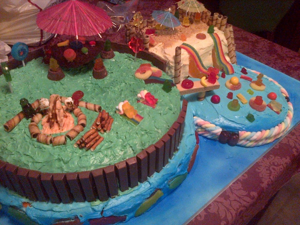 made a cake with the kids for a pool party yesterday, 12 boxes of mix and 36 eggs, yum!!