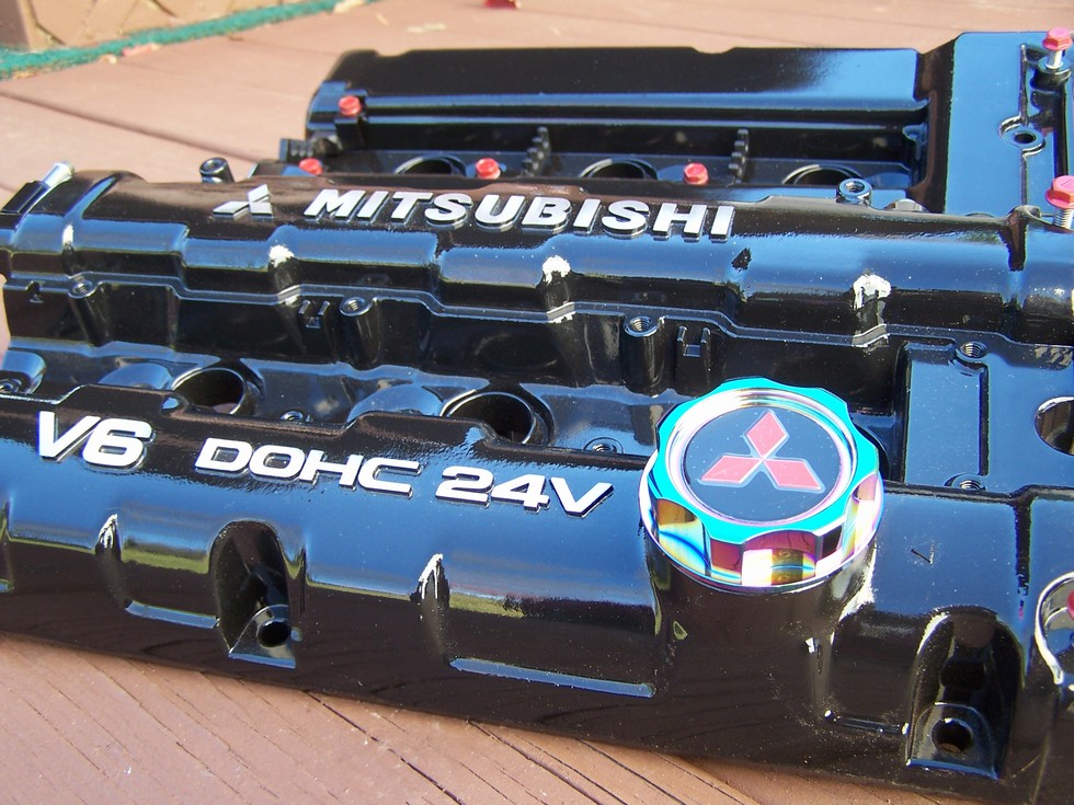 forgot to post this pic of the valve covers with new powder coat and oil filler cap.