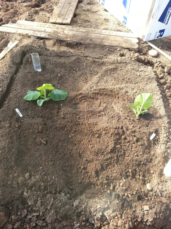 Tunnel #2. Left 968 (est) Shaw, 3 week old plant. Right, 1622 Young. (The Shaw is a 2032x2009 cross)