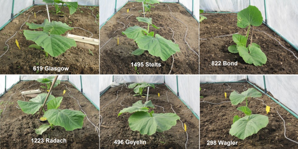 Today I transplanted the last two candidates of my line-up into the patch (the 822 Bond and the 298 Wagler). Whereas these two plants (in the big pots in the greenhouse) had been one or two days ahead of the others which went into the patch earlier (see previous post), the other four plants seem to be one or two days ahead now.