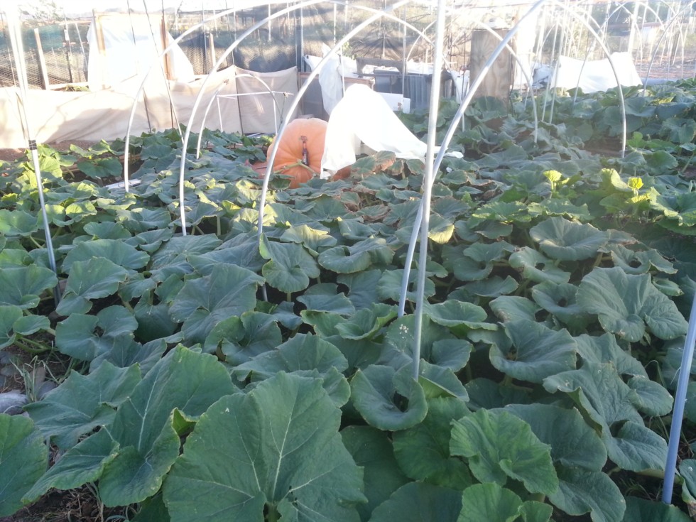 Ok folks....hard to believe the rest of the U.S. is trying to get first true leaves to pop...and I am 19 days away from pulling this thing....building tunnels in December, checking on seed germinations Christmas eve night, showing up every night in Jan to cover and light candles (Dean coming every morning in Jan to uncover), double vines, not enough shade, too much shade, disappointing growth, wow.......here's the 923 Gerhardt plant....I've been working really hard to keep leaves, and add a few fresh ones this month.