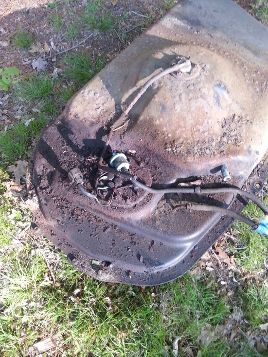 fuel pump was leaking bad, I think the rust is holding the tank together.