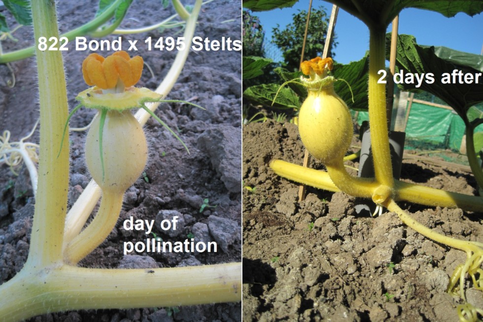 On my 822 Bond plant the first fruit aborted right after the second pollination (again 822 Bond x 1495 Stelts). No need to worry, this 2nd fruit looks like it really wants to grow :-)