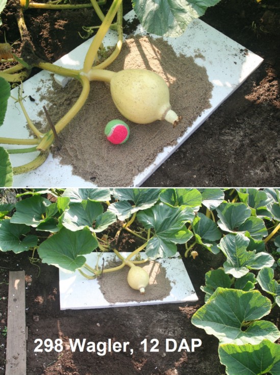 There�s probably at least one person out there in this big wide world that has been wondering where this little bugger had been all the time...here it is, the fruit on my 298 Wagler plant. It received its floor out of a styrofoam sheet and sand today, it seems to want to grow (size-wise it is only one day behind the development of the 1495 Stelts fruit...not too bad...but color-wise....hm...I better say "BUTT color-wise"....).