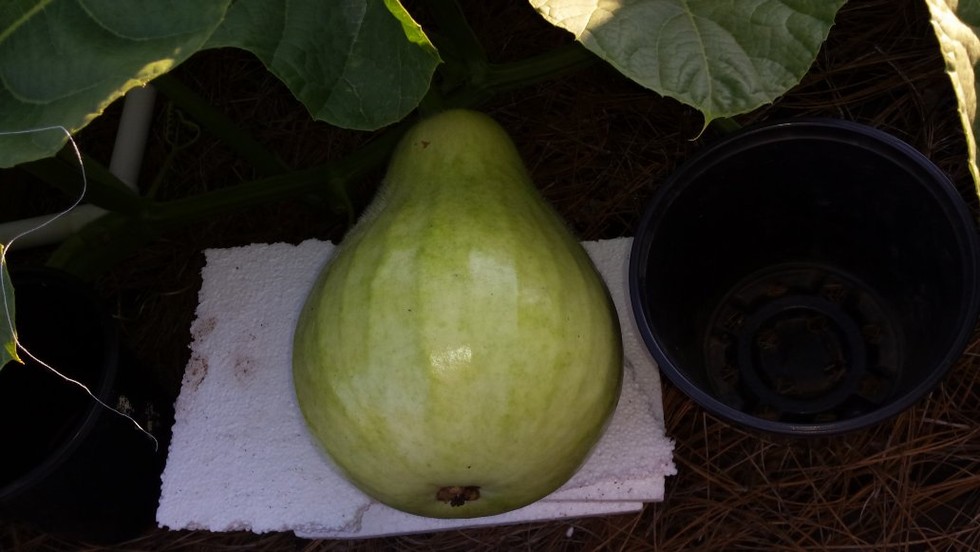 270 kent bushel gourd.... plant is a monster, its full grown and i'm trying to stop the growth. Every leaf node puts out 1 or 2 suckers and a male flower and 1 or 2 females. UNREAL. The female is the keeper. its on the main. The planrt this year put out females at every node on the main. Last years didn't, just a few. Its growing a little slower so far.... but i'm hoping for better being on the main. Its experiment year !