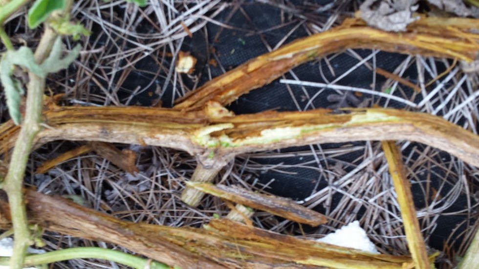 the 295 melon had stoped growing 3 weeks before i weighed it. This is why. the main vine rotted out. There were no roots on the vine from the rot to the melon.