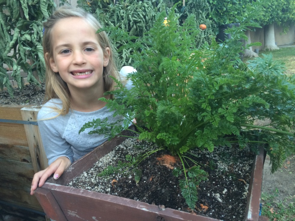 Here's Faith after loosing her two front teeth!;) Mr. Carrot is doing very well, I just wish that I planted her in a bigger box! She's hit the bottom and pushing out the top and there's still 8 or 9 months to go.