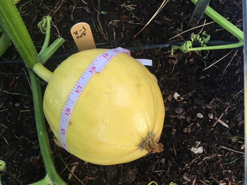 The front plant is doing about the same at 12 DAP it's gaining 2" a day round and 1-2" from stem to blossom end.