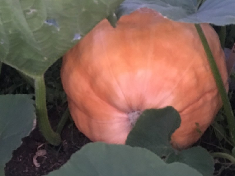 I've been slacking on my pumpkins lately. This was the one I thought was going to be my monster this year. Ended up a late bloomer bypassed this one a few weeks ago. Still rather large. Will measure tomorrow to get an estimated weight.