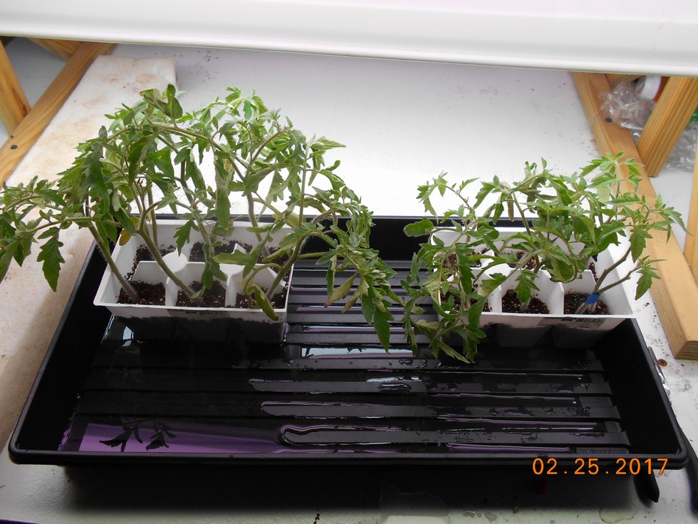 1st of 3 rounds of tomatoes all are 4.87 May. 100% germination! Two on far right first try at grafting.