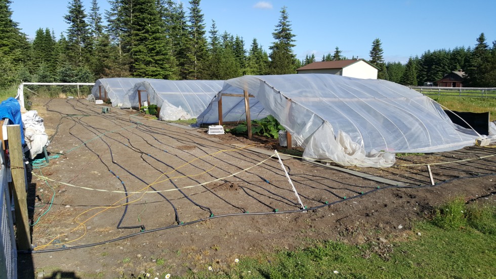 The north side. The plants on this side aren't quite as long as the south side, where they're all out of the hoop houses a few feet.