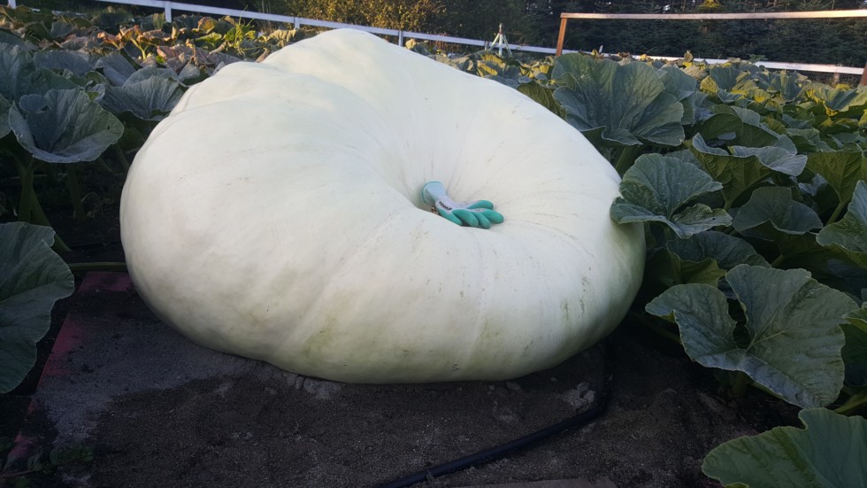 1844...if it's going to turn green, it is certainly taking its sweet time! Well, whether it decides to be a squash or pumpkin, it's doing well: 50 pounds a day!