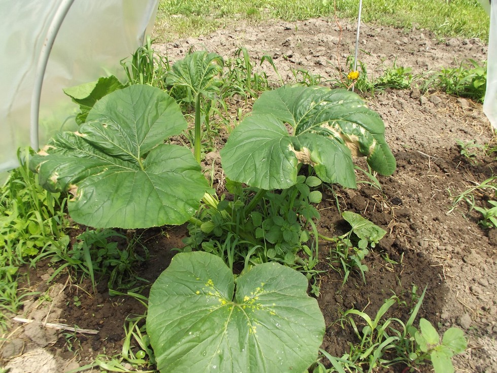 0143 Engel is suffering the most from sunburn. The other plants look better, but the 899 is sending out the main in the wrong direction. One does that every year. I took an 11432 Engel and one of my 1047.5's to another Anamosa grower who got a late start. They were looking OK in 2 gallon pots. I hope he gets the orange pumpkins that he likes.