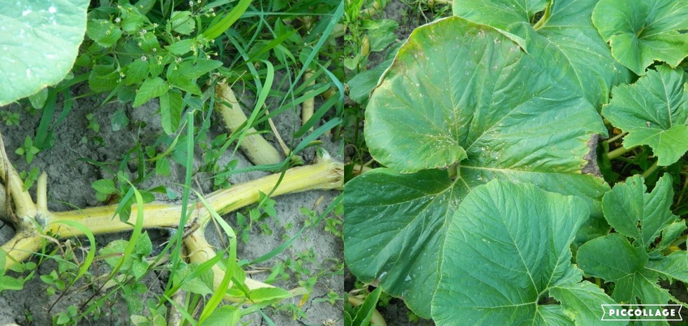 Blowouts on the main vine of the 748 at nearly every leaf node. Now the leaves on secondaries are looking sick. Jacob will be pulling this plant so I can seed a brassica cover crop. This area will get the mustard treatment next year. It is the second lowest plot in the garden, so that and all the rain could explain the problem.