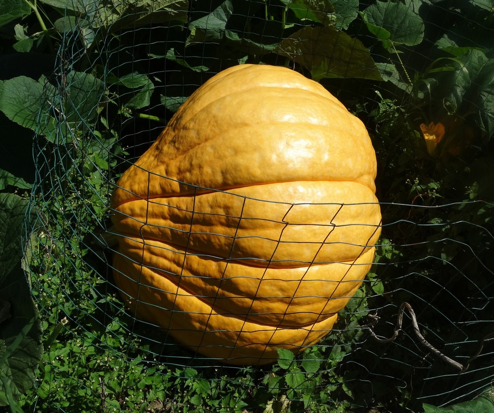 Ring my bell/ 1047.5 McWilliams x self. It gets a full white sheet and is developing the color of the parent pumpkin.