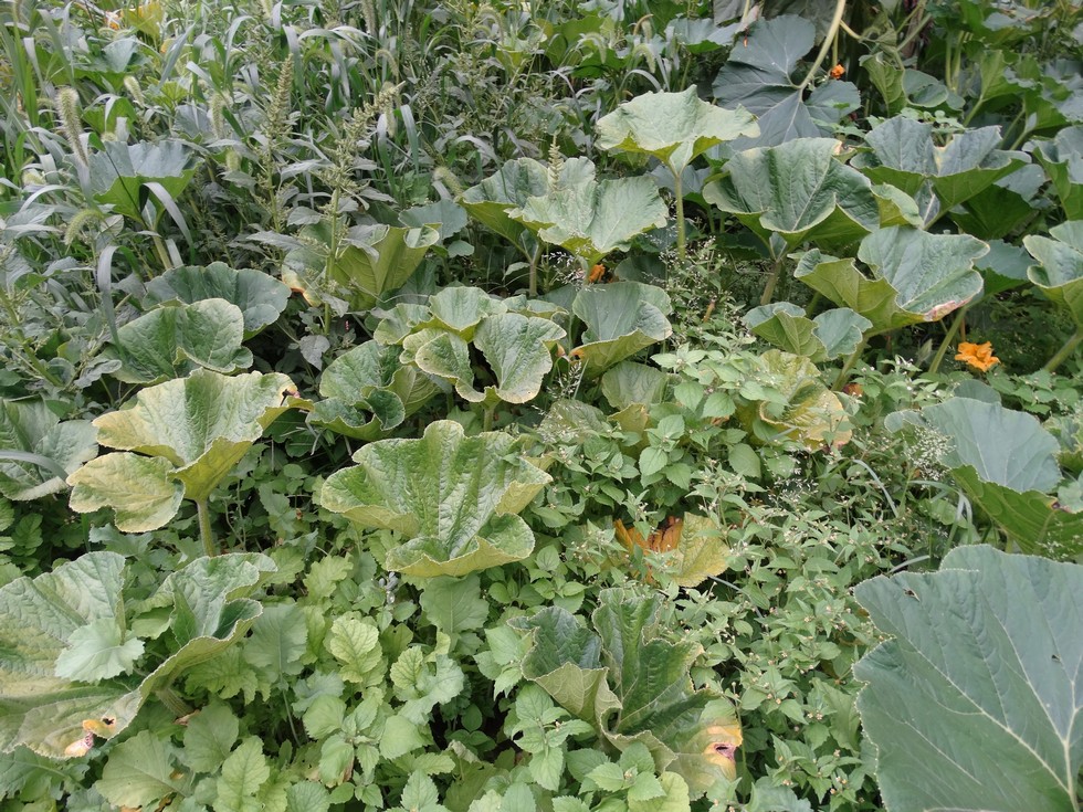This might explain the 1200 getting soft. After mowing and tilling in the mustard on an adjoining plot, I seeded radish and rape and then let a couple secondary vines grow on it. They looked fine yesterday, but this came on quick. I was going to cut the vines out when a thunderstorm moved in quickly. I was hoping that the mustard would knock out the disease on that spot. It had rape and radish last summer after the pumpkin died, and they have the same disease fighting chemicals as mustard, just not as strong. I may have to re-think plans for next year.