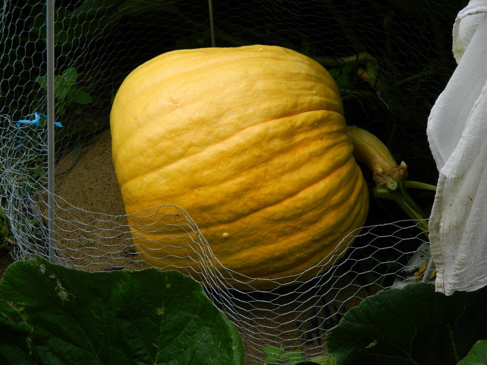 With the bell and the white 899 nearly stopped growing, this one is about all that is still growing. The 1047.5 in the low spot. DAP approx. 28 est 131#, gaining just 6# per day. We are getting excessive heat now, along with lots of rain. I got some granular 10-10-10 spread before the rains, so maybe it will get into the soil and speed things up. Just 39 growing days until Anamosa weighoff. I would like to see it average at least 15# per day until then, but that is wishful dreaming. At least the shape is decent and it should be a decent orange.