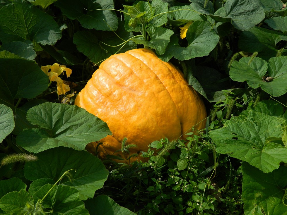 One of the 2 pumpkins still going on the 1047.5. The plant is still very healthy. We lost 2 in the 500# to 600# range earlier on this plant. This one has rabbit damage that healed. I hope it keeps growing. It will be picked for Anamosa in 15 days. Hot today, heading close to 90 this afternoon. Then 60's tomorrow and low 40's by Saturday morning. Summer is about over.