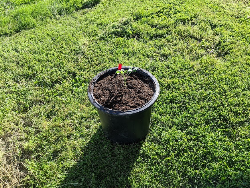 Test post for 1st diary. Pic of bucket challenge tomato, opted for 5 gallon pot. Plant is from my biggest tomato last year 4.01 grown from the 4.28 Spaziani