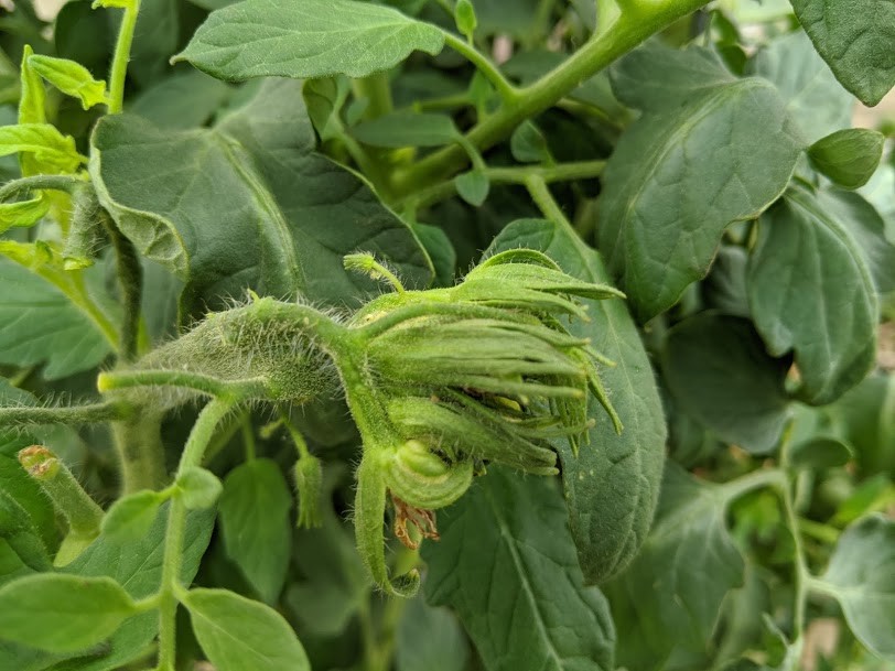 Still trying to throw some nice blossoms also but these are too late to do much with the current setup. Since it's already potted up, might prune it back and make it and indoor tomato plant for the winter.