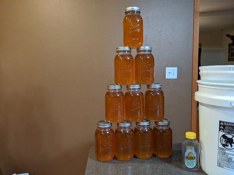 Also harvesting honey this week. Looks like I'll end up with 6-7 gallons of liquid gold from my one hive this year.