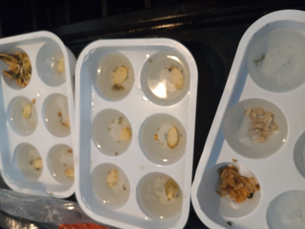 Took seeds out of paper towels and zipped bags. Then put in trays of water. I soaked them while did leprechaun clean up. Pumpkin and sunflower dehusked tonight. Then back to water. Sunflower seeds doing clam opening. Need a lot of prayer for sprouting.