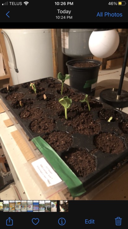 This is the last post I�ll do on the subject, but I�m mildly blown away. So far 9 of the 20 250 Hamilton seeds have popped and they are 12 years old. Maybe because they were unopened in a container filled with rice all this time or maybe it�s because they were soaked in undiluted peroxide for five hours. Maybe because the bottom heat is in the mid nineties, I don�t know. I expected a few but not this many and not so soon.