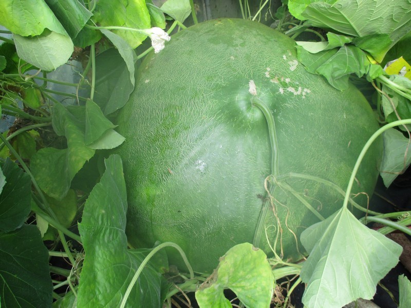 Greenhouse-Patch --- Bushel-Gourd Mittle september.....DAP 60....and he is growing on!