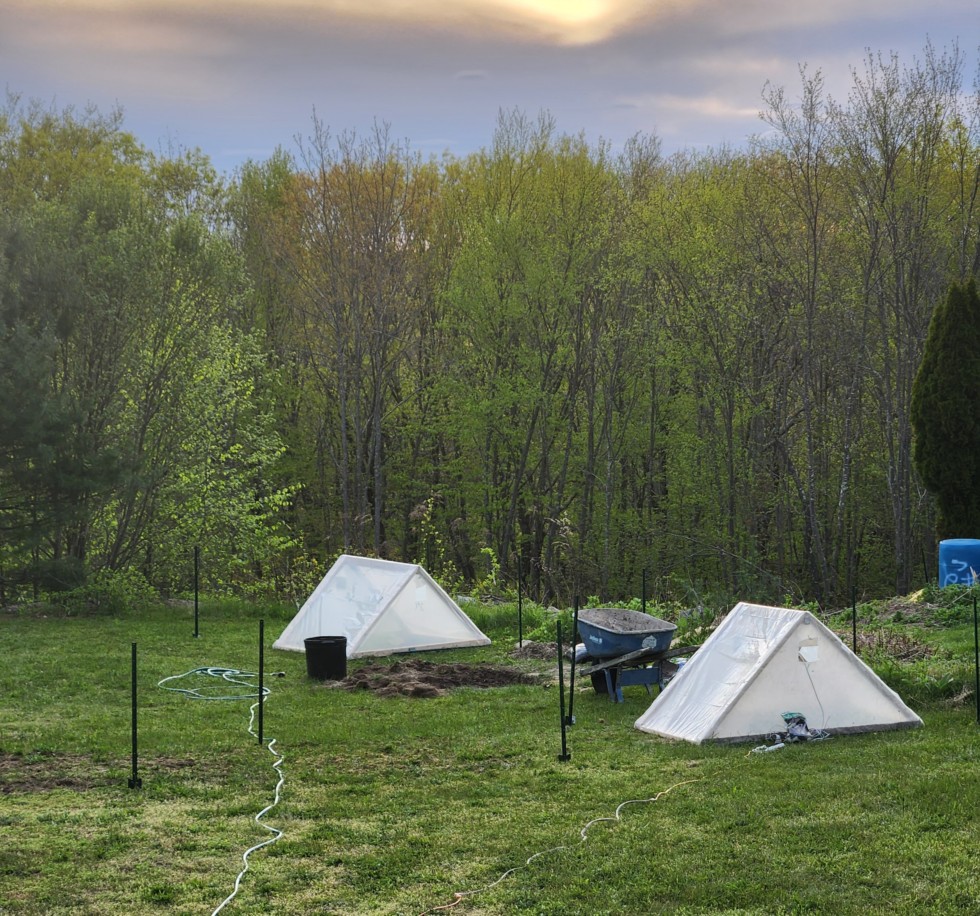 I've finally finished creating two cold frames and providing a heat source so I can set my seedlings out into the New England weather pre-last-frost. The patch is about 24 x 40, which I'm hoping will give me enough space for one large plant, one plant for the 150 sq ft contest, and maybe a little extra room for some porch pumpkins. Just sent in some soil samples for testing, hoping to get the results back soon so I can amend the soil before the plants get too big