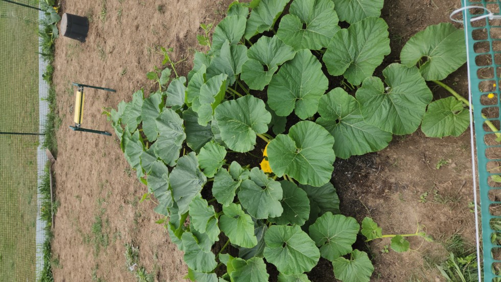 Here's the main plant, which is starting to pick up some steam. It threw off a runner that I trained back behind it. I'm planning on doing a mini waterfall pattern with this plant. I think there is something to be said for minimizing travel distance to the fruit by having longer secondary vines as you get closer to the fruit and shorter ones further back.