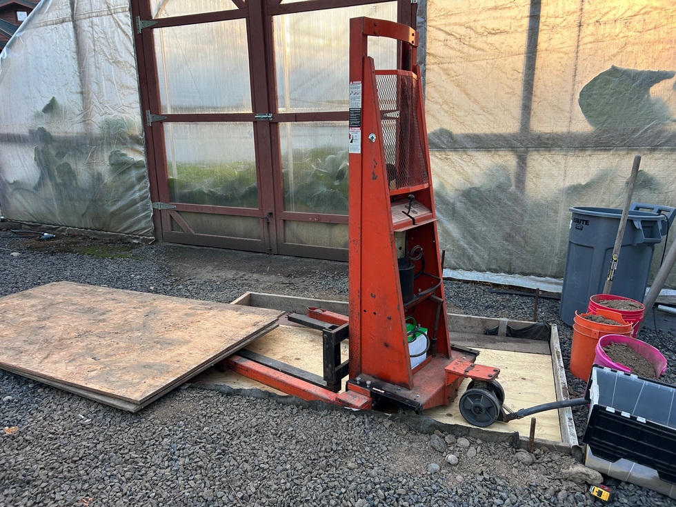 I've been working on getting my 2000 pound Presto Lift ready to go the past couple days. After replacing the battery it works great! I dug a flat and level six inch deep hole and lined it with a plywood deck for the lift to sit on as it helps my liftgate hoist gigantic pumpkins onto my flatbed truck. I love a good project, so the fun just keeps rolling!