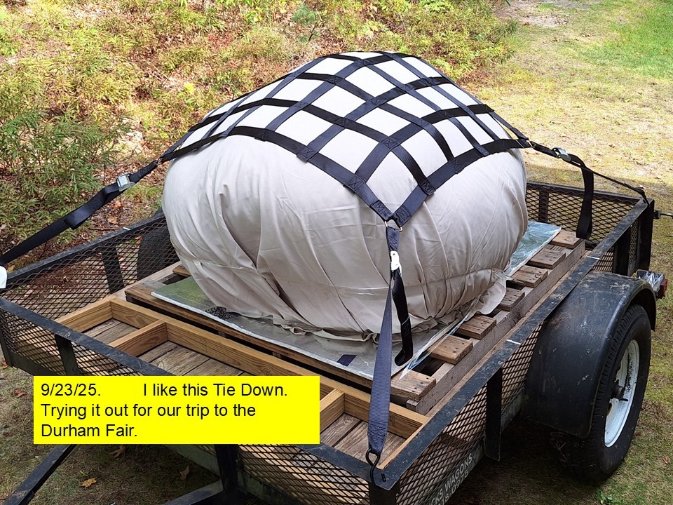 We are testing our new Pumpkin Tie Downs for our trip to todays weigh-off at the Durham Fair. Got them on Amazon. All the growers I talked to seem to like their set.