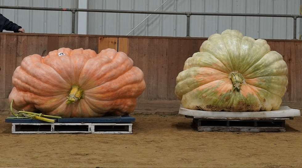 Pictured on the left is my pumpkin and on the right Alex Noel. There is a great contrast in both color and shape, but this is what makes each and every plant/pumpkin unique. One similarity is that they are both grown from a 2023 Sperry seed, however the exact seed is different.