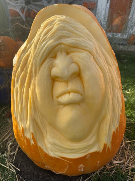 250 pounder. A couple of these are second carvings on the fresh side to look nice for Halloween