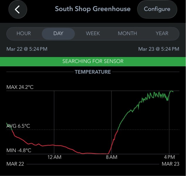 Shop Patch heater is in. I think the warm soil kept it a degree or two warmer than outside.