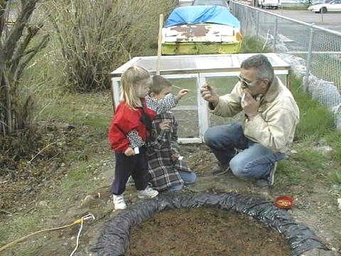 Tyler,ciera,and Grandpa,planting the first seeds.
