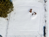 2023 before things went south. Drone view of both plants growing from the center of the garden, one growing to the left, and one to the right. This was taken just before pollination.