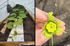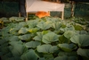 2006 Wolf has outgrown the mini greenhouse, with the secondaries and main vine reaching the sides at the same time. First baby pumpkin can be seen a couple leaves back but will wait for 17-20 good side vines before pollination, so this one had to be removed.