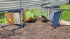 At the end of day 1, post planting, I checked the soil temp and EC readings. Soil temperature = 63 Fahrenheit at 7 p.m. EC reading = Range of 0.56 to 0.37 within 12 inches of the plant in all directions Outside temps hit 82 Fahrenheit in my backyard today. To help protect the pumpkin I rigged up a makeshift concoction of lawn chairs, plywood, and concrete edging blocks to help reduce stress on the pumpkin as it hardens of with wind and shade protection.