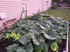 We've had some rainy weather in the last 24 hours. It started with 7/8" in 35 minutes. Then a few hours later another 3/4" fell. And, the gauge accumulated another 3/8" overnight. With the leaves saturated, then the wind picked up and it caused some stress damage to about 6 of the largest leaves. It could have been worse. The moisture has caused about 10 female blooms to appear overnight. I will not need to water for at least 2 days (maybe 3). But on the positive side...the bedding is filled with red wigglers. By this time next week, I think the 150sf bed will be full of plant and hopefully we get a viable pumpkin fruit shortly after.