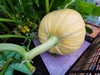 We've had two pumpkins on the vine for two weeks and a few days. Our primary pumpkin on the main vine, and 19 days since it was pollinated, is gaining weight at a rate of 15 pounds per day this week. We have a second pumpkin growing on a secondary vine that is close behind but several days younger, since it was pollinated more recently. The bigger pumpkin isn't looking very good, but continues to gain weight consistently. It's a good thing I kept the backup because I'm guessing the primary won't be around this time next week. I hope it proves me wrong, but it's dimpling and its progressing. My wife wants to keep growing it, or it would be culled. I'll know better next year (actually knew better this year but had no other fruit at the time). We culled two in the past 3 days that looked better as 3 or 4 DAP than this one did at the same age. This one is taping at 125 pounds.