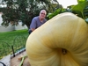 It's time for a weekly progress update on my backyard pumpkin. The current measurements predict a weight of 530 pounds, which is short of the winning entry at the Michigan State Fair on Tuesday evening that hit scale at 1,573 pounds. Some of the leaves are succumbing to mildew at this point -- both powdery and downy types. We've had nights with temperatures falling into the mid-40s and that's unusual for mid-August. Somehow its created an increase in the quantity of mildew in my patch.